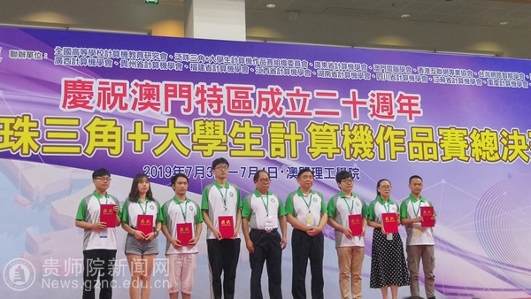 本网讯 7月3日至4日,2019年泛珠三角+大学生计算机作品赛总决赛在澳门理工学院体育馆举行,我校3支代表队分别获得全国一等奖(金奖)、全国二等奖(银奖)、全国三等奖(铜奖)和全国最佳展示奖。是贵州省参加该赛获得的首个金奖!我省各兄弟院校纷纷点赞!