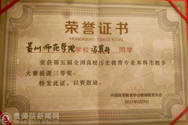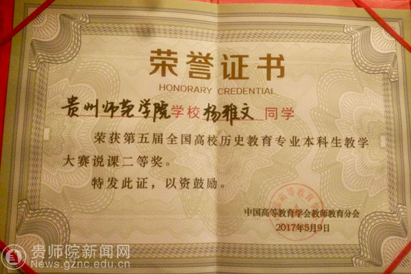 5月5日,徐凌老师带着四名学生前往山东聊城大学参加比赛。本次比赛共有来自全国90余所高校的师生参加.组委会坚持公平、公正、公开的原则,严格把关比赛的每一流程。从比赛队伍报道开始,就对参赛选手实行编号制,不能暴露所在学校以及姓名,以将作弊行为降到最低。并且,比赛场次、课题、出场顺序都实行抽签制。在进入赛场之后,禁止携带手机等通讯工具,一经发现便取消参赛资格等。比赛中,评委严格把控每一位选手的说课内容,表情仪态,时间等,只有每一环节都接近完美才能从一百多名参赛选手中脱颖而出。经过激烈竞争,我校历史与社会学院杨雅文,冯其丹同学分别荣获第五届全国高校历史教育专业本科生教学大赛说课二等奖和三等奖,司霖霞获优秀指导教师奖。