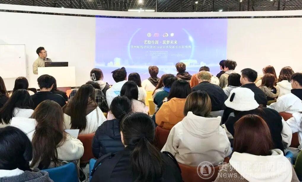 本网讯 为助力新生明确生涯方向、提升专业认知与规划意识,近日,伟德国际1949官网美术与设计学院在逸夫楼艺术实践工坊举办“艺绘生涯·筑梦未来”生涯规划系列讲座。活动由学院党委副书记邱琴、辅导员陈代威先后主持,特邀乌当区家庭教育指导中心副主任申立强担任全系列主讲,面向2025级公共艺术、数字媒体艺术、美术学专业全体新生。