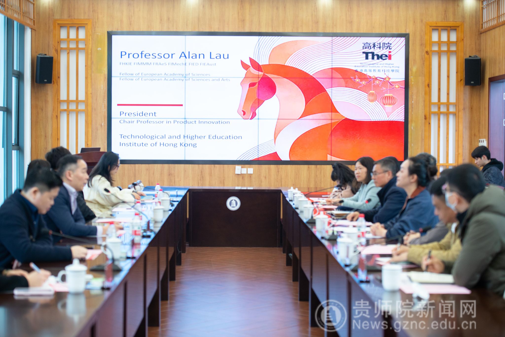 本网讯 3月24日,香港高等教育科技学院校长刘建德率团到访我校并进行座谈,我校党委书记战勇热情接见嘉宾,校党委常委、副校长(正厅长级)赵守盈、贵州省教育厅港澳台办干部黄自洁、省教育国际交流协会项目官员谌秋吟出席,我校相关院系负责人参加座谈,港澳台事务办公室主任张彬主持会议。